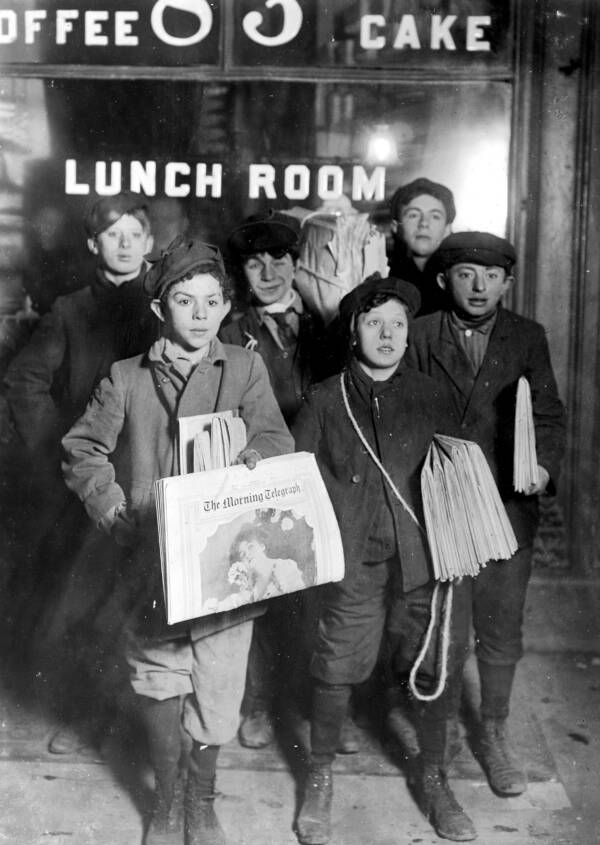 Newsboys, sometimes as young as six, were poor and often homeless. They paid for the papers that they sold and suffered when sales were bad.