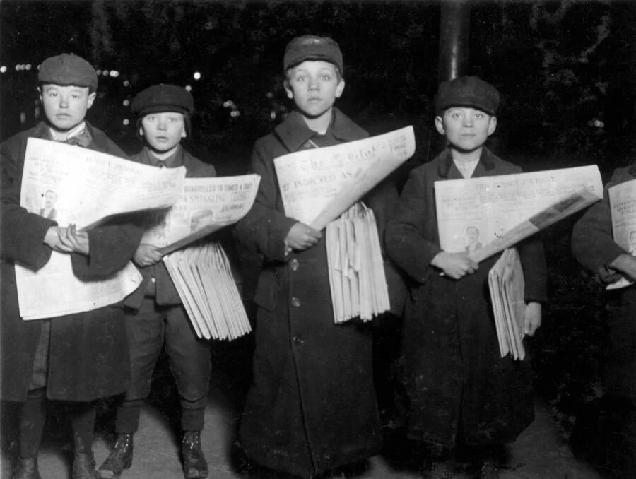 This changed in the 1840s. The invention of the rotary press ushered in the era of “penny papers,” which the masses could afford, as well as the need for workers to sell them. Before long, the dozens of dailies in cities like New York were hawked by young children, called newsboys or “newsies.”