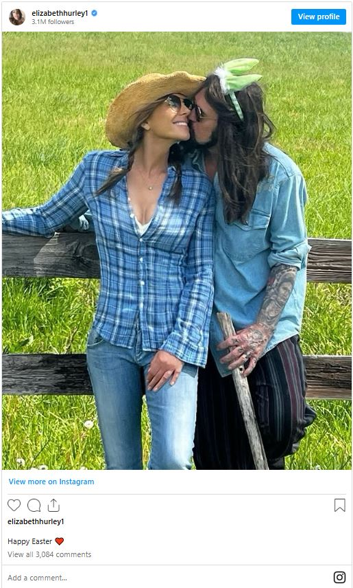 The pair was dressed casually in farm-appropriate attire. While Hurley sported a white-and-blue plaid flannel shirt with her straw hat, Billy wore a denim shirt and black-and-red striped pants. He was also wearing bunny ears, which signalled to the Holiday the two of them were celebrating.