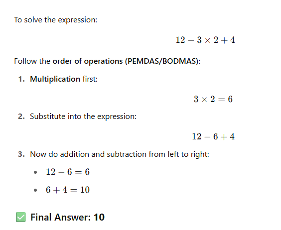 Explanation and Solution 12-3×2+4