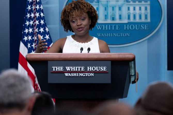 The audience erupted into applause, with some MAGA supporters even standing up in admiration. Jean-Pierre, unable to respond, lowered her gaze, clutching the microphone tightly.