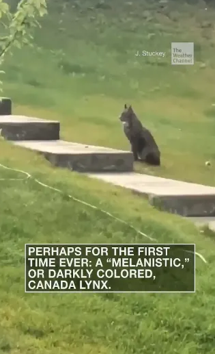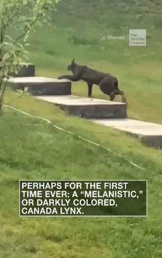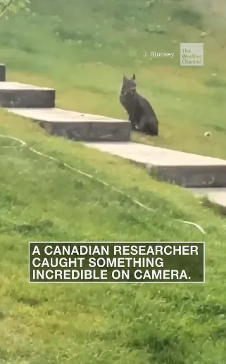 Rare Canada Lynx captured on video walking up stairs,Photo Credit: The Weather Channel