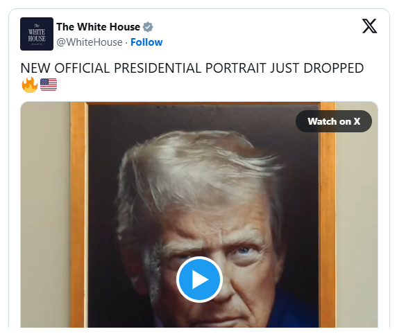 The portrait debuted in a short White House video showing its installation in the Eisenhower Executive Office Building. A White House official later confirmed it will replace older versions in federal offices nationwide and has already been uploaded to the White House website.