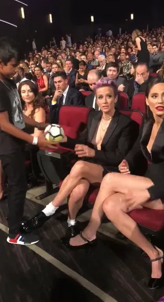 During the awards event in Los Angeles, a young boy nervously offered Rapinoe a football to sign. Although she signed it, she never looked at him or spoke a word. Instead, she turned to another guest, ignoring the child completely. In the background, one man appeared visibly stunned—he held his head in his hands.