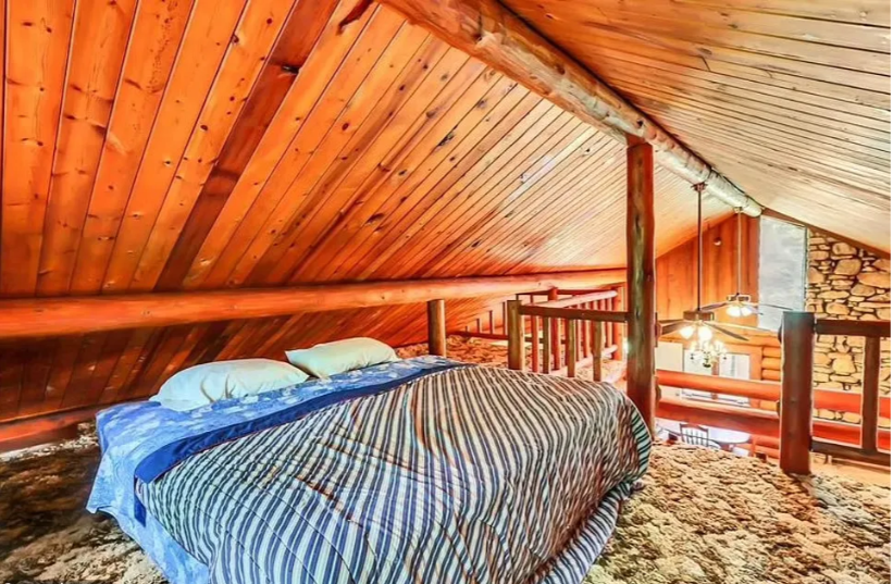 Bedroom Upstairs: There is a cozy bedroom called a loft upstairs in the house. A wooden ladder can help you get there.